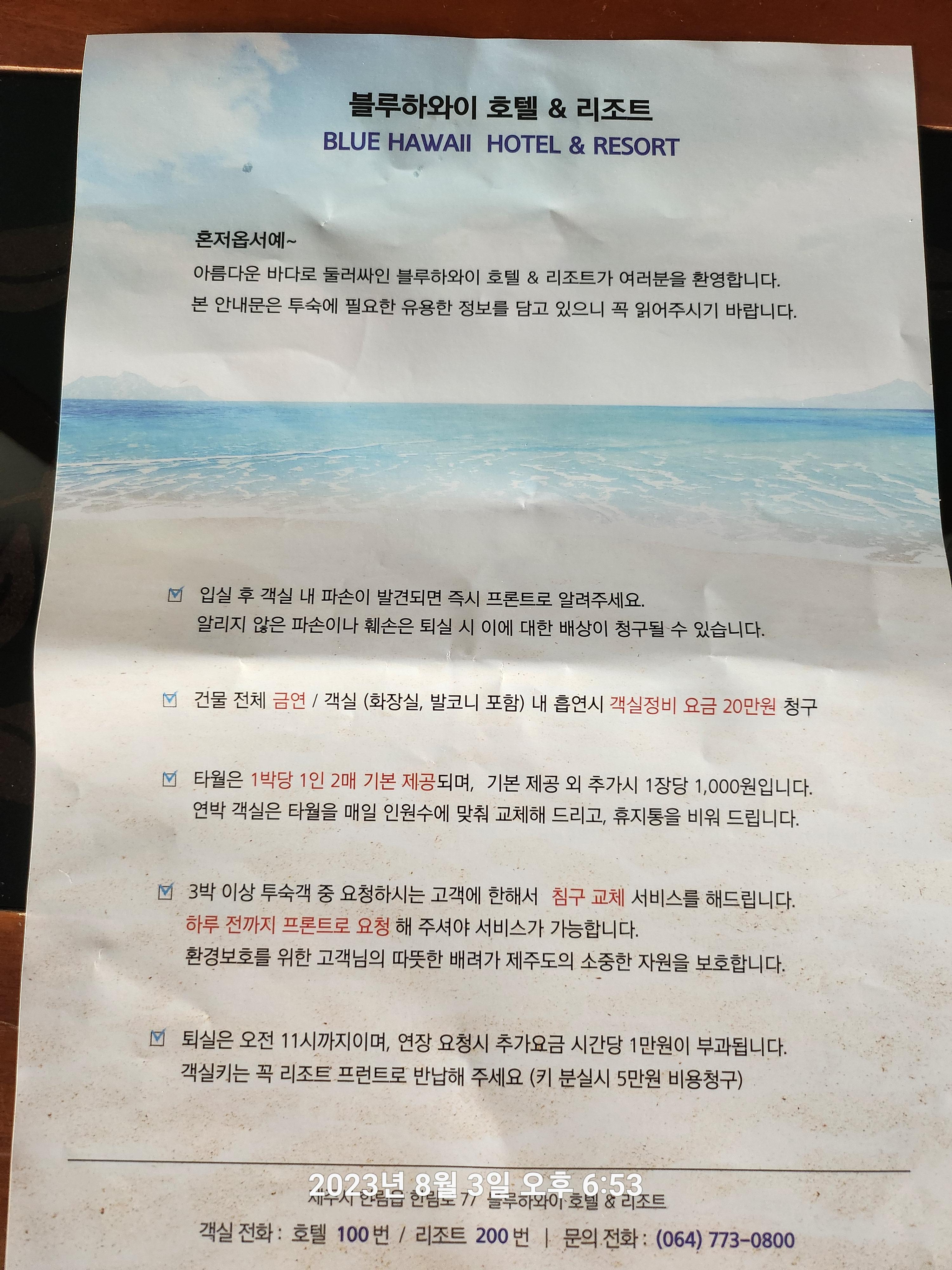 이렇게 처음 체크인하면 안내문을 주시고요